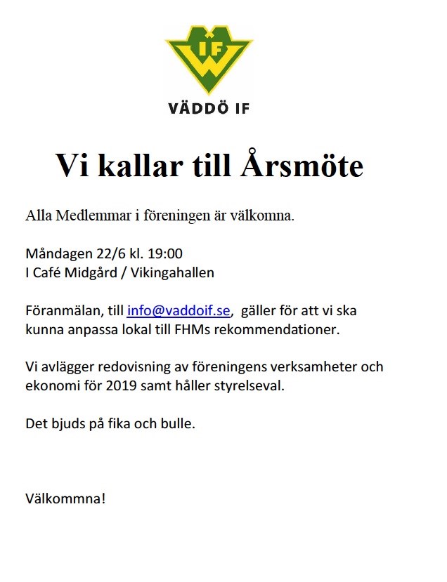 för medlemmar i VÄDDÖ IF. VÄDDÖ IF 25 maj 2020 0kommentarer