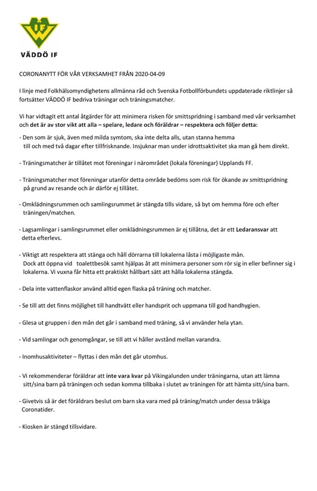 för VÄDDÖ IFs verksamhet VÄDDÖ IF 9 apr 2020 0kommentarer