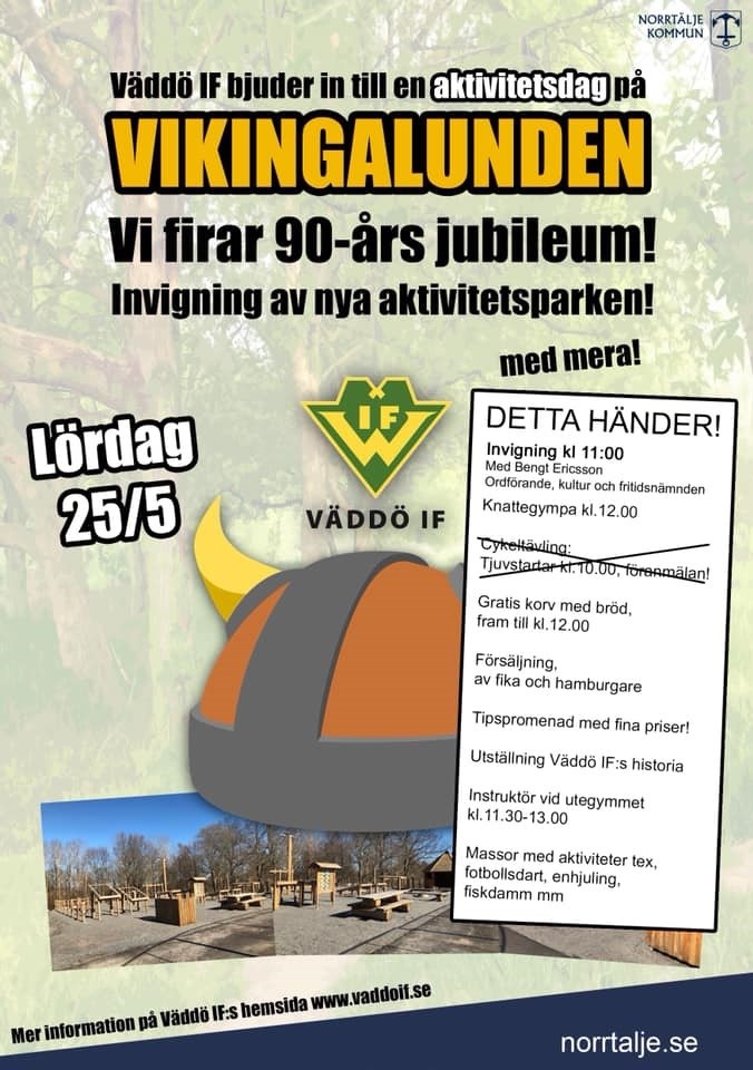 Det blir en ändring i repertoaren i då cykeltävlingen stryks. Den kanske kommer tillbaka en annan gång. Men var inte oroliga. Det kommer att finnas väldigt mycket att göra ändå. Kom till Vikingalunden nu på lördag 25/5 och till exempel ta en fika, ät en hamburgare, spela boule, titta på vår utställning om föreningens historia eller testa fotbollsdart bland mycket annat. Det kommer att finnas något för alla. Klockan 11:00 startar det.