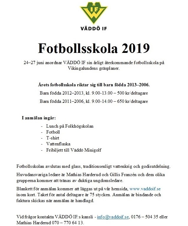 Fotbollsskolan VÄDDÖ IF 9 maj 2019 0kommentarer