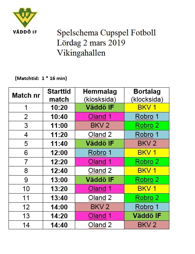 På lördag, 2/3, så har vi Poolspel för P0809 i fotboll i Vikingahallen från kl.10:20. Kom och heja på oss och ta en fika i caféet. VÄLKOMNA! Speluppställning i Poolspelet: VÄDDÖ IF 1 mar 2019 0kommentarer