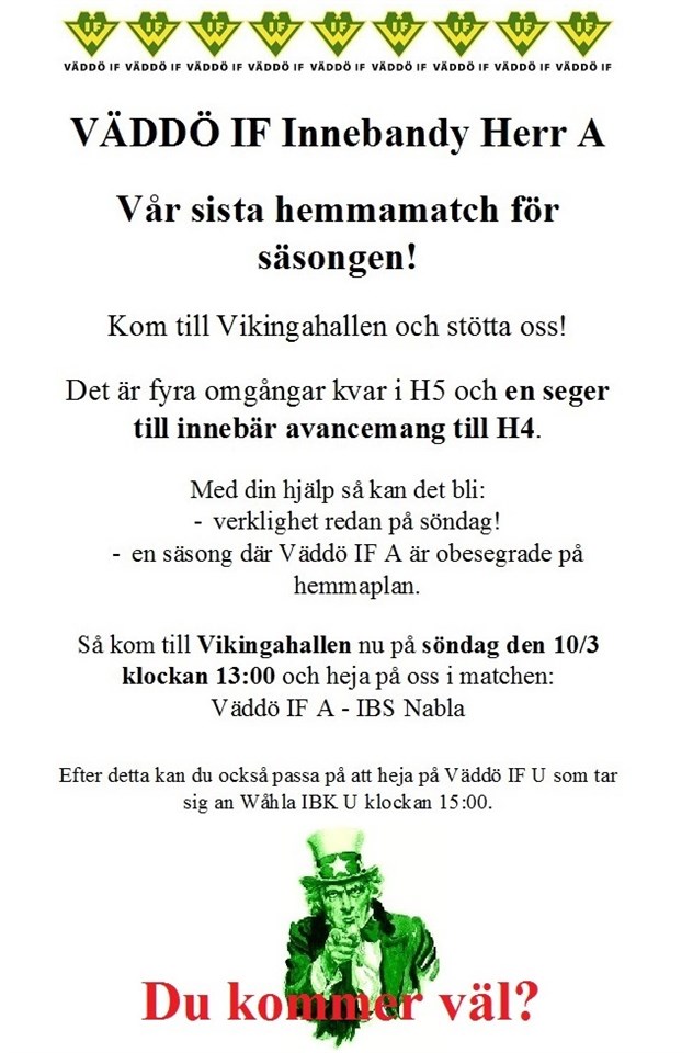 10/3 kl. 13:00 VÄDDÖ IF 7 mar 2019 0kommentarer