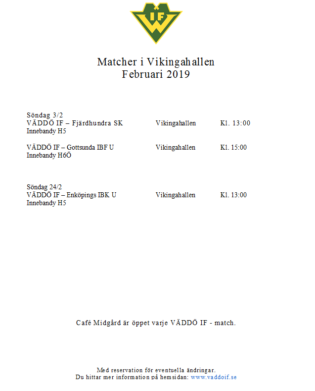 i februari VÄDDÖ IF 4 feb 2019 0kommentarer