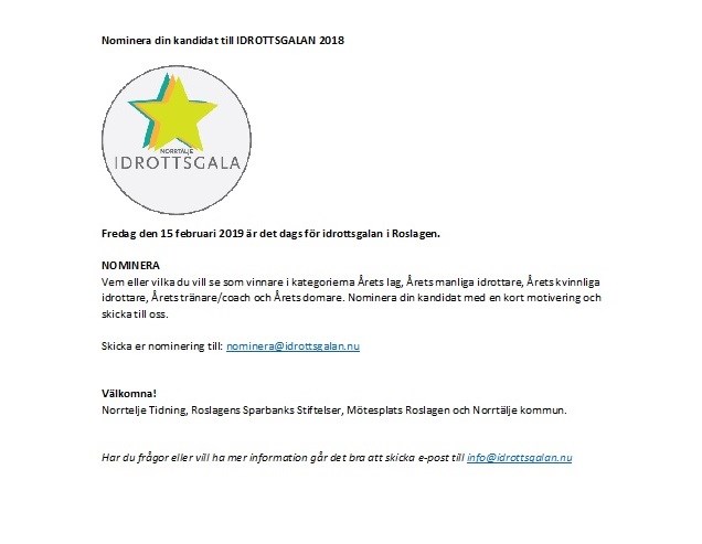 • Norrtälje Idrottsgala 2019