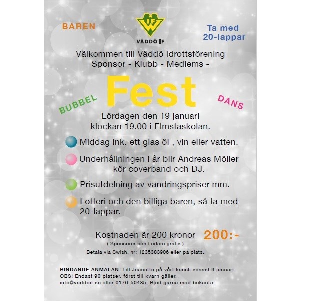 19 januari. Kom ihåg att ringa eller skicka din anmälan. Sista anmälningdag är den 9 januari. VÄDDÖ IF 13 dec 2018 0kommentarer