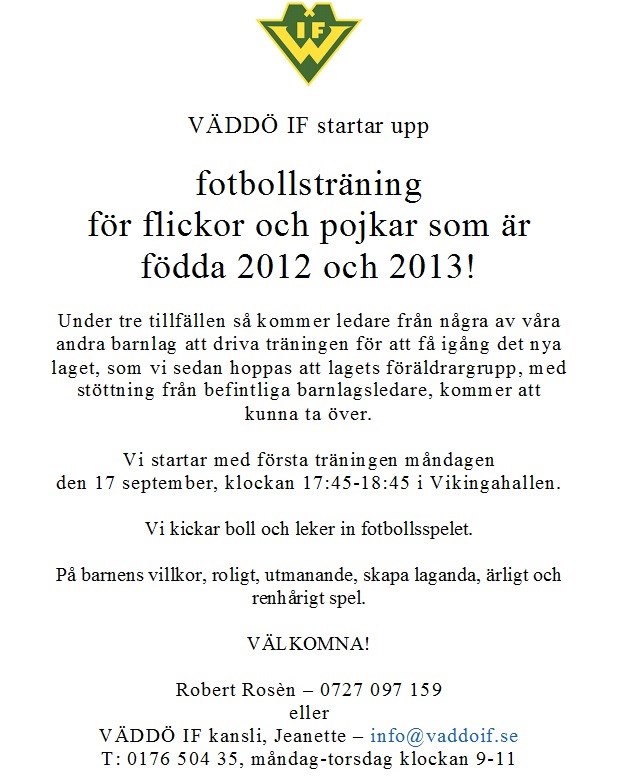 Fotboll för Pojkar och Flickor födda 2012 och 2013. VÄDDÖ IF 6 sep 2018 0kommentarer