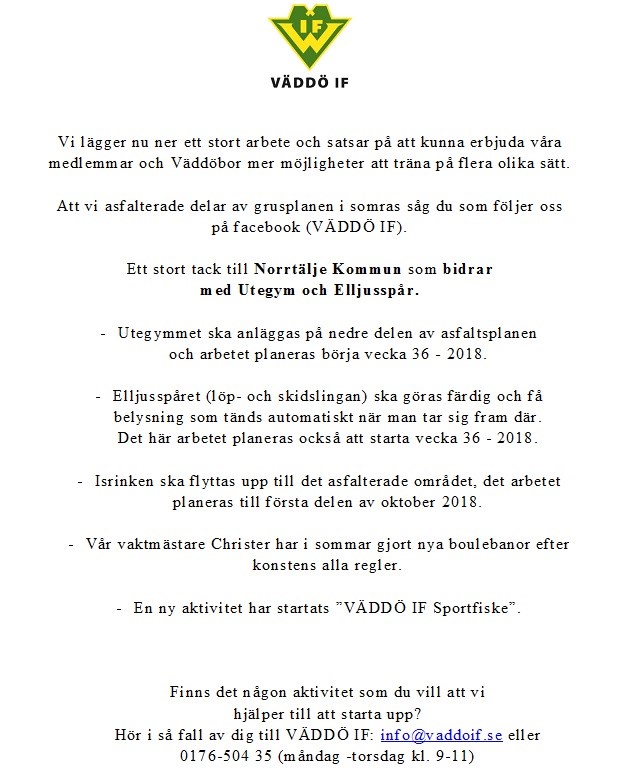 Välkomna! VÄDDÖ IF 15 aug 2018 0kommentarer