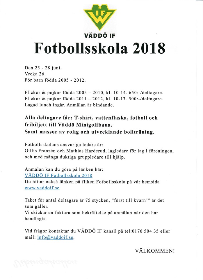 April 2018 VÄDDÖ IF 17 apr 2018 0kommentarer