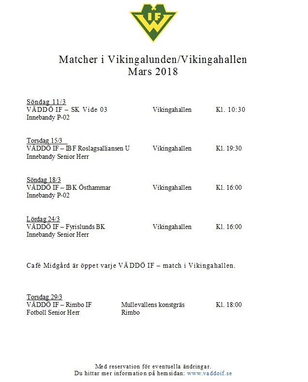 Föräldrar, Ledare och till dig som är intresserad. VÄDDÖ IF 26 feb 2018 0kommentarer