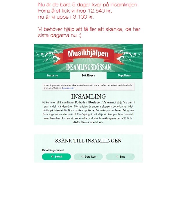 • Musikhjälpen, 5 dagar kvar.