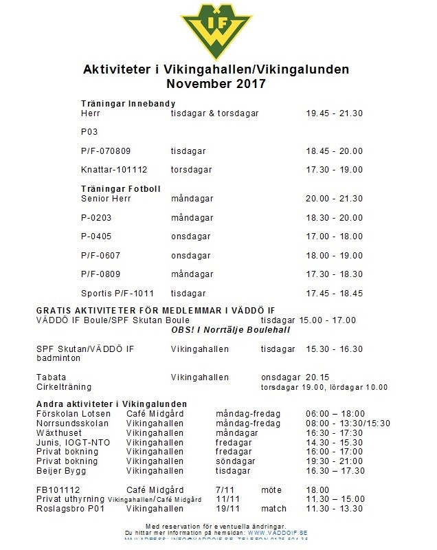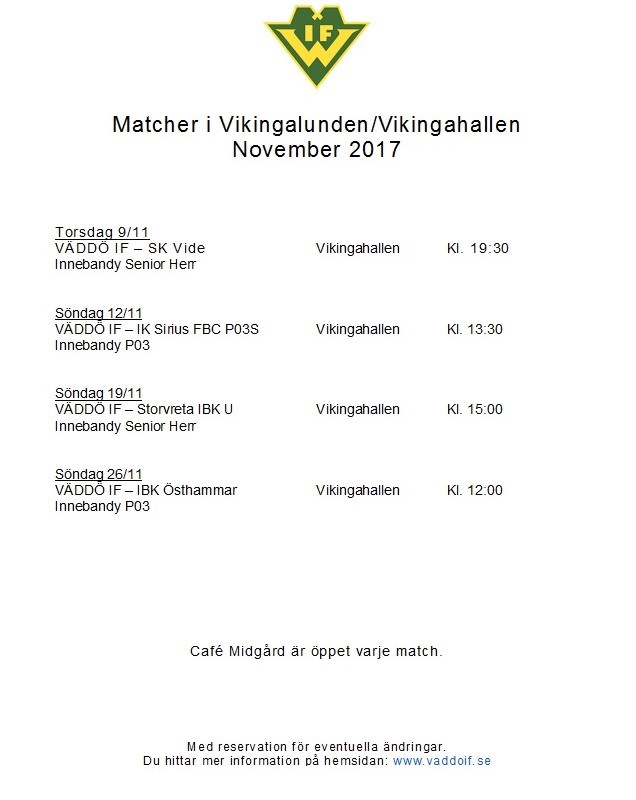 November VÄDDÖ IF 31 okt 2017 0kommentarer