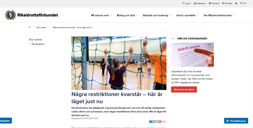 "Några restriktioner kvarstår – här är läget just nu" https://www.rf.se/Nyheter/Allanyheter/nagrarestriktionerkvarstarhararlagetjustnu