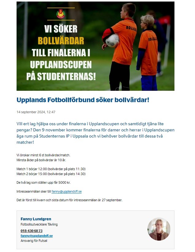 Hej! Vi heter Lina och Amanda och är mammor till Arwid och Albin i laget. Vi har tagit på oss att ta hand om lagets ekonomi och tänkte nu starta försäljning av kakor från kakservice.se för att få in pengar. Såklart inget säljtvång eller att ni ska känna er tvungna att köpa. 20.309kr skulle det kosta laget att få ihop till Väska, tröja och byxor (detta utan initialer) till alla barn. Försäljningar till lagen gör att föräldrar inte behöver gå in med egna pengar till kläder/väskor, och gör att inget barn blir utan och känner sig utanför. Vi har också hand om ekonomin i 15/16 laget, och där hade vi 4 egenföretagare som sponsrade oss och fick sin företags-logga på tröjan. Dessa gick in med 3000kr vardera. Vill ditt eller någon du känners företag sponsra så skriv nedan. Fler än 4 går såklart bra. På morgondagens träning finns en kartong från kakservice, ta där 1-2 kataloger/familj (om ni inte bara säljer online) Redan nu kan ni registrera era barn och börja sälja online via denna länk: https://www.kakservice.se/minasidor/FUPYGE Inne på mina sidor sen finner ni länken ni kan dela vidare som leder till er personliga webshop. Lättast är att du delar din personliga länk till släkt och vänner på sociala medier eller sms, då lägger dom själva in beställningen. Annars (eller också) tar du beställningen via katalog. Lägg en katalog på arbetsplatsen kanske? Vi har satt ett slutdatum på försäljningen som är 25/10. Då vill vi att ni ska ha lagt in försäljningen från katalogen till webbshoppen. Kakorna kommer hem till någon av oss 3-5 dagar efter vi skickat beställningen. Där sorterar vi era burkar och ni hämtar. Sen delar ni ut till era kunder och tar betalt via swish till er. När ni fått in pengar från alla så swishar ni hela beloppet till lagets personliga swish-konto (nummer kommer). Vid oklarheter är det bara att ta kontakt med oss här nedan. Lina och Amanda