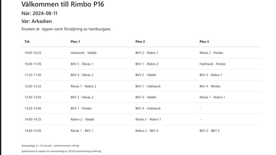Nytt spelschema. Vi har samling på lunden kl 08:00 och åker man direkt var där 08:50