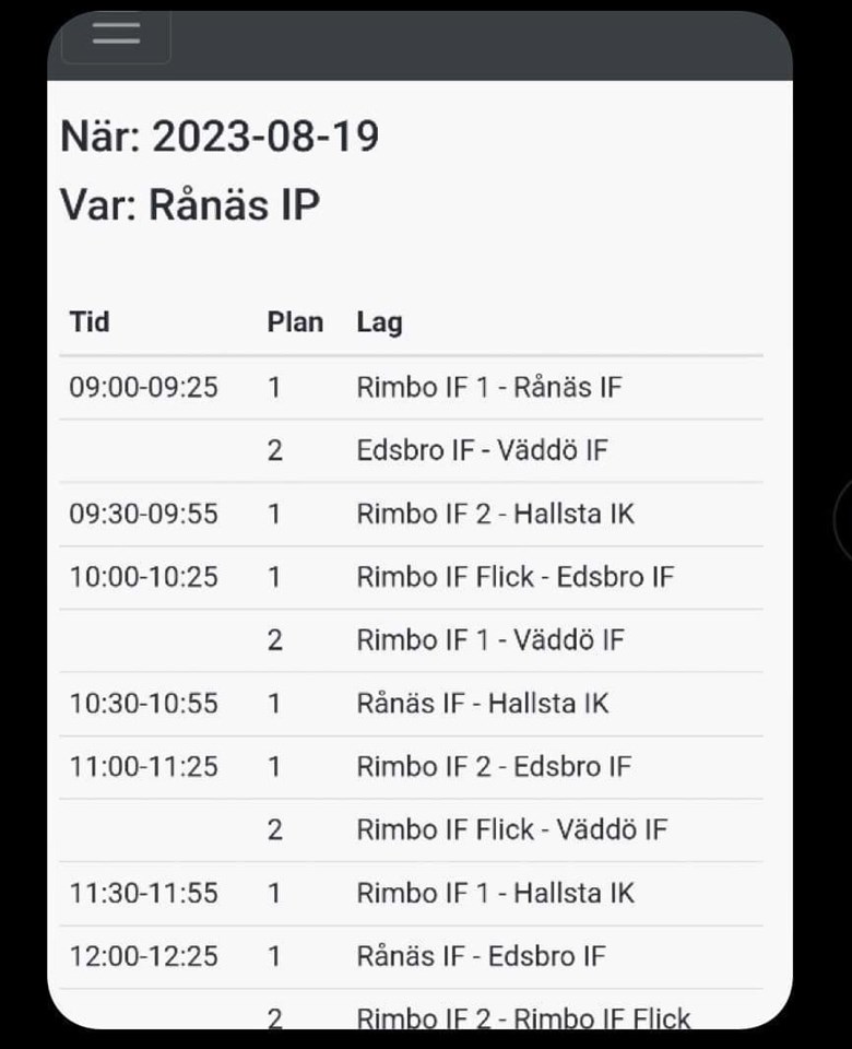 Måndag kväll kl 19.00 tar vi emot Rånäs IF 2 med avspark 19.00. Det var ett bra tag sedan senaste matchen för oss i den här serien men desto mer spelsugna då till morgondagens derby. Vi ligger trea i en serie med 6 lag numera efter att IF Vesta dragit sig ur. Varmt välkomna till Vikingalunden imorgon och för bilåkande publik så får man tänka på att Älmstabron är avstängd för reparation så kör antingen söderut över Bagghus eller norrut över Trästa. Vi ses imorgon kväll ! FB Senior 20 aug 2023 0kommentarer